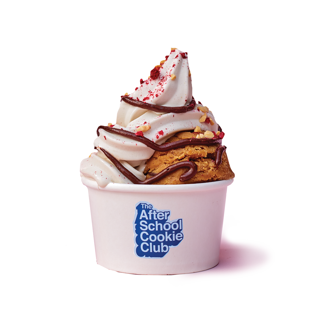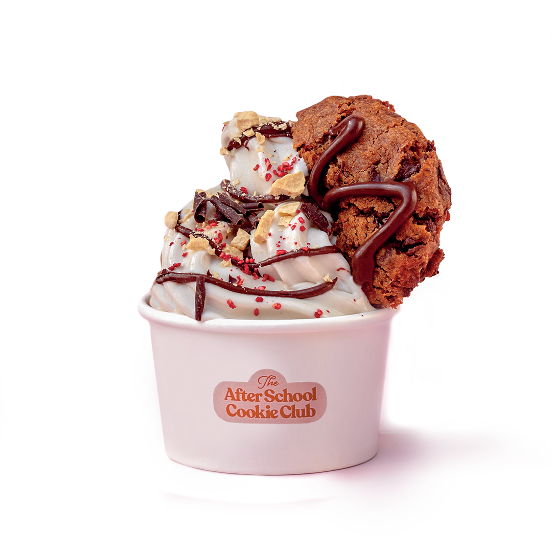 Choose your cookie dough, served with ice cream and toppings.